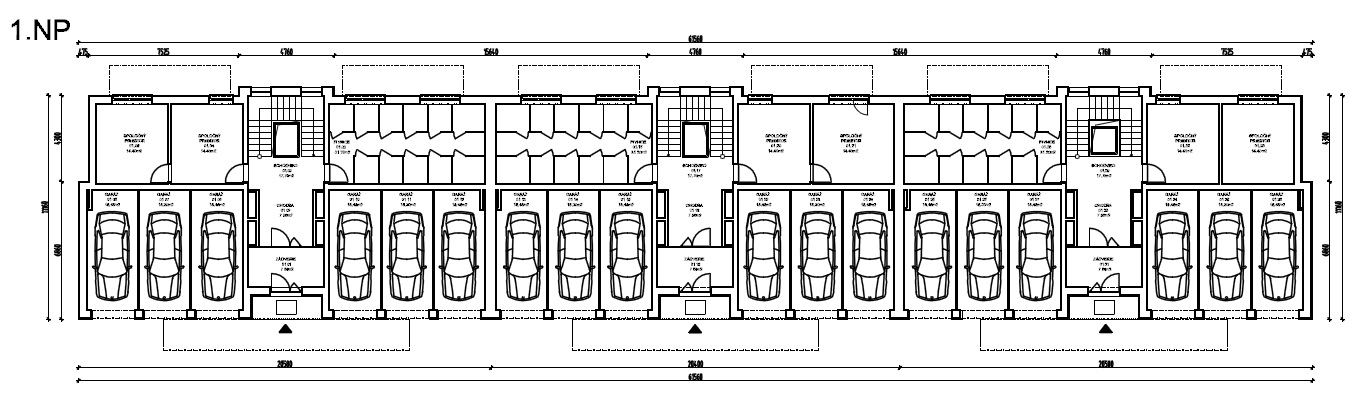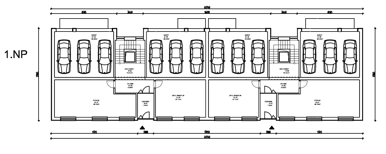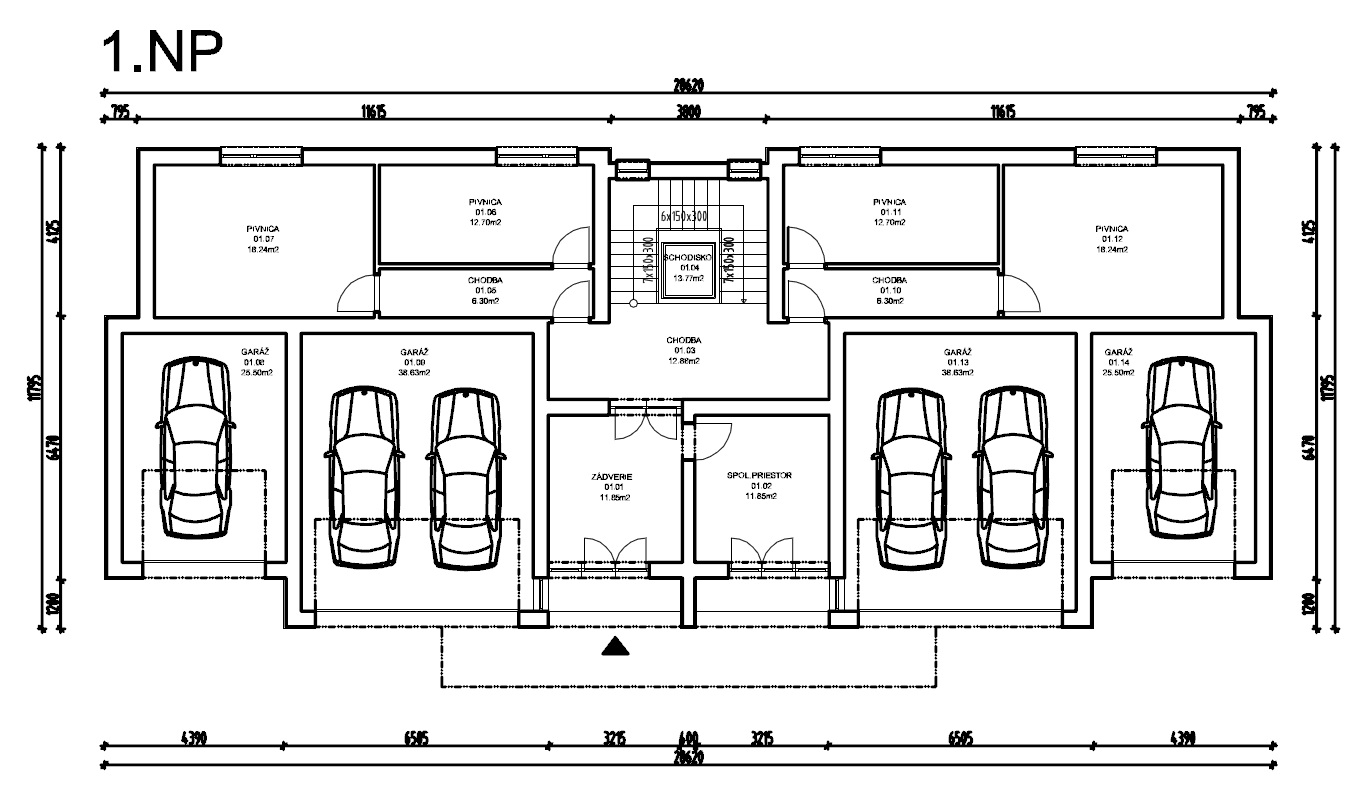 Trojpodlažná samostatne stojaca budova. Na 1.NP budú samostatné jednotlivé garáže pre 6 osobných vozidiel, okrem toho spolocné a pivnicné priestory obyvatelov domu. Komunikacným jadrom spájajúcim podlažia budovy bude vstupná hala s jedným schodiskom.
