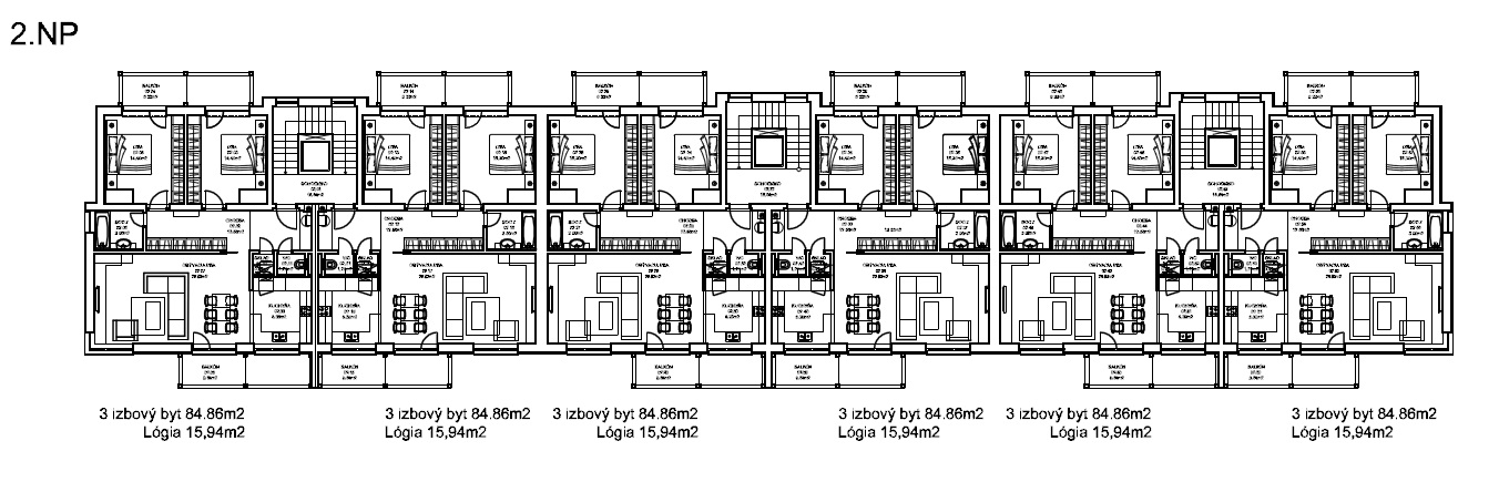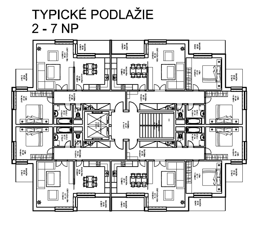 Pôdorys 2. až 7.NP |