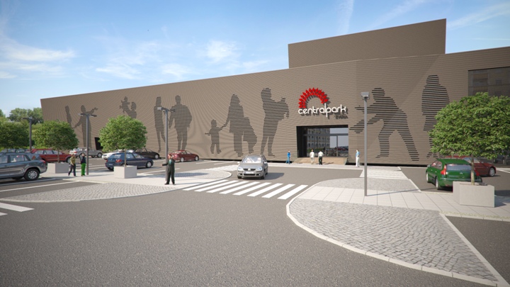 Podúrovňové parkovisko je sprístupnené dvojicou rámp z oboch príjazdových smerov. Z podúrovňového parkoviska sa zákazník dostáva priamo do stredu obchodného móla, resp. druhou vertikálou do zdravotného strediska. Hlavný vstup do obchodného centra je situovaný na os príjazdovej vetvy z Nográdyho ulice. Táto os tiež organizuje priestor v predpolí centra a delí parking na menšie skupiny po oboch stranách hlavného vstupu. Druhý vstup v pravo od hlavného sprístupňuje vetvu zdravotného strediska, tretí evakuačný vstup je zároveň obslužný pre gastro prevádzky. Zásobovanie je orientované do Voljanského ulice v združení so zásobovaním ostatných nebytových objektov v jej pokračovaní.
