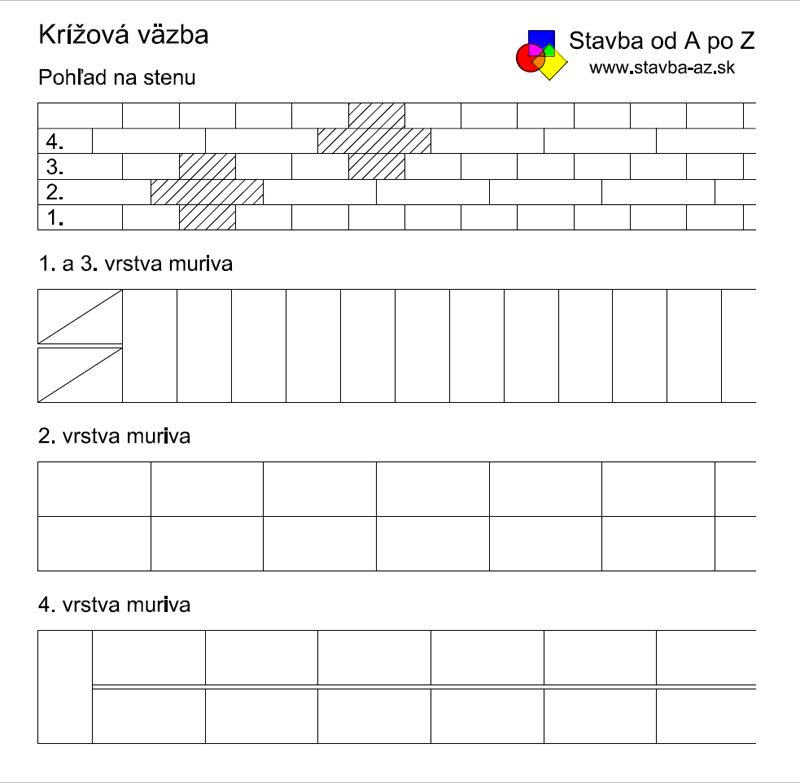 Väzby muriva z tehly (steny, stĺpy, rohy, kríženia, komíny)