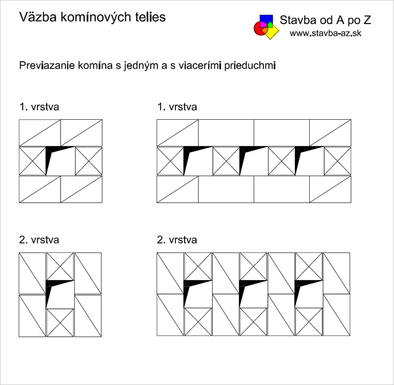 | Riešenie väzby komínov | Väzba pri polkríženi stien |