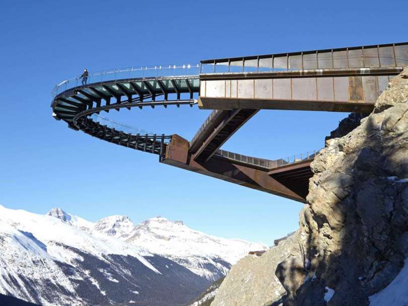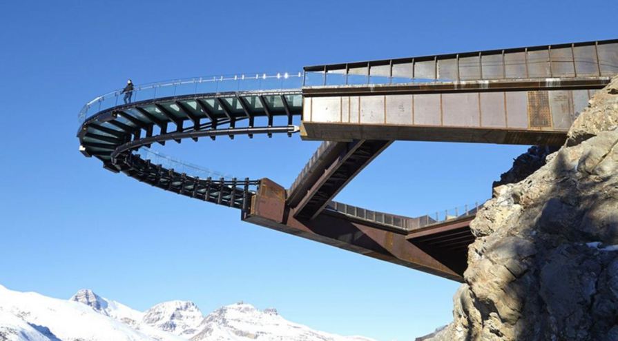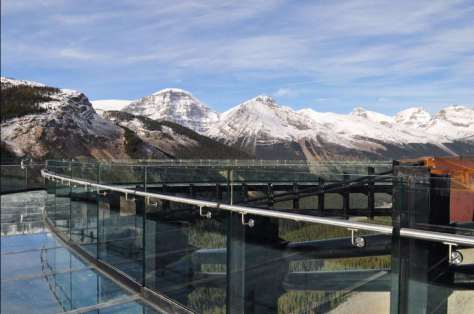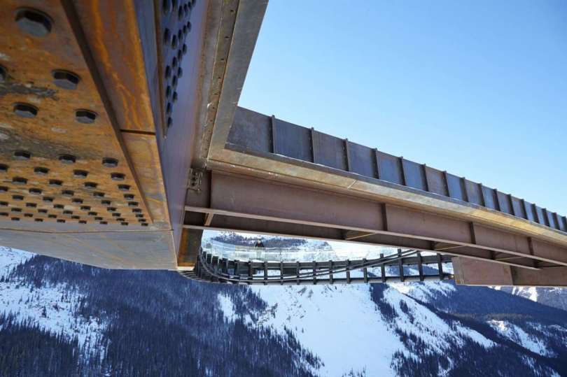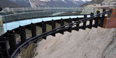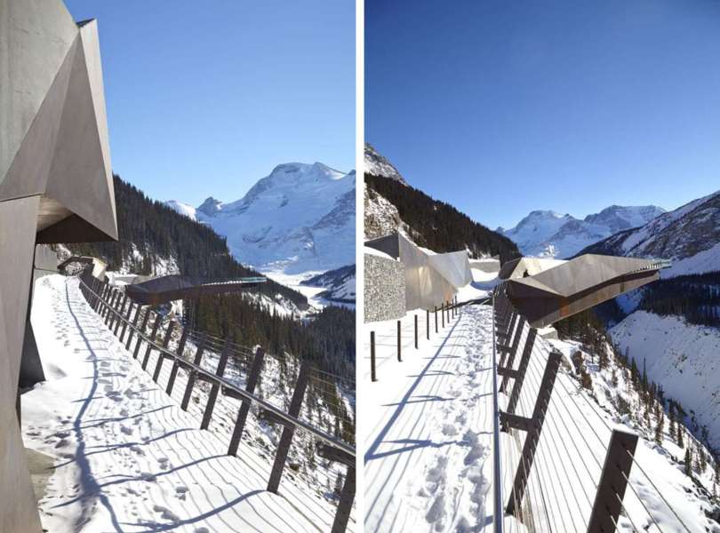 Z architektonického aspektu je zalomená geometria vyhliadkovej plošiny ďalej zvýraznená nezvyčajnou horizontálnou konštrukciou zavesených káblov, ktorá podopiera sklenený chodník. Vstúpením na sklenený povrch je možné fyzicky zakúsiť hĺbku okolitého ľadovcového poľa. Vzdialenosť od vyhliadkovej plošiny po spodnú časť dna doliny Sunwapta Valley je priamo úmerná hrúbke ľadovcového poľa Icefield.