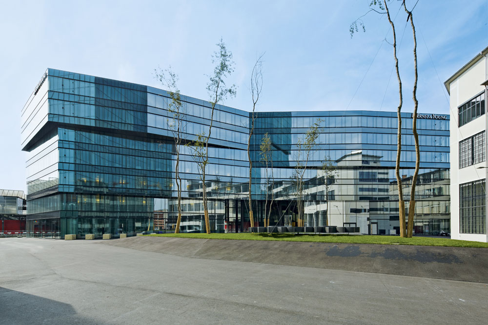 Autorom stavby su miestni architekti Annette Gigon a Mike Guyer, ktorych kancelaria zvitazila s tymto projektom, v roku 2004, na medzinarodnej sutazi. S realizaciou sa zacalo v januari 2008 a verejnosti sa stavba spristupnila 12. decembra minuleho roku. Vyslednu formu tvori spletenec niekolkych kubickych hmot. Na dva sikmo spojene obdlzniky su v roznych vyskach pripajane dalsie objemy vytvarajuce odskoky, alebo vystupky. Projekt za 300 milionov eur ponuka takmer 70.000 m² prenajimatelnych kancelarskych ploch, ktore su uz dnes vsetky rezervovane a davaju tak investorovi dostatok odvahy, aby sa pustil v okoli Prime Tower do stavby dalsich vezi. Na zapade by mal vyrast obytny subor 'Maaghof' s 200 bytovymi jednotkami. Do roku 2015, by mal v tejto oblasti na zapade Zurichu vzrast pocet obyvatelov z terajsich 3.000 na 7.000 a pocet pracovnych miest z 20.000 na 30.000.