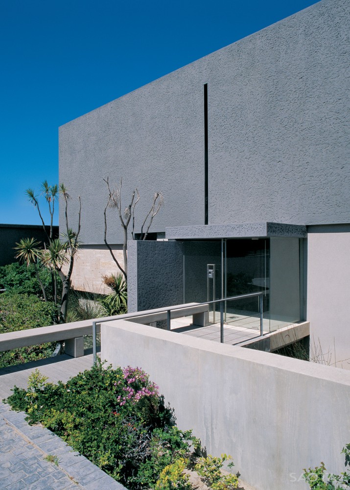 | Tento rodinný dom, navrhnutý spoločnosťou SAOTA – Stefan Antoni Olmesdahl Truen Architects, sa nachádza približne 30 km od Kapského Mesta. Osadený je pri idylickom, no zároveň extrémne drsnom západnom pobreží Južnej Afriky. |