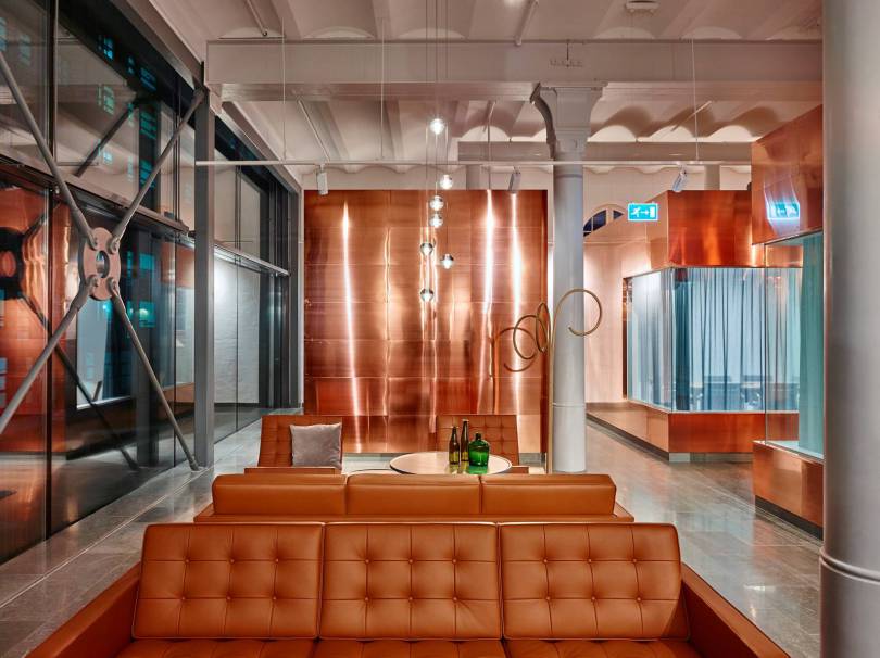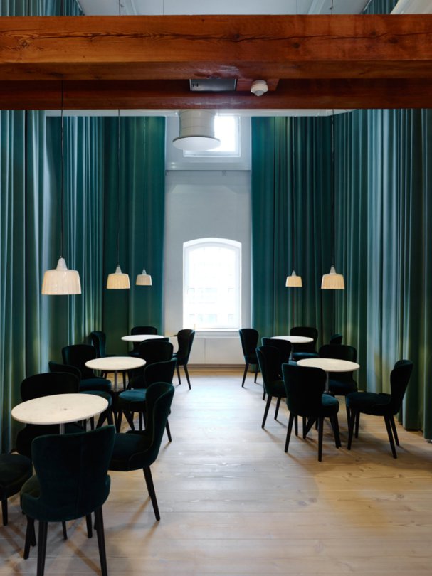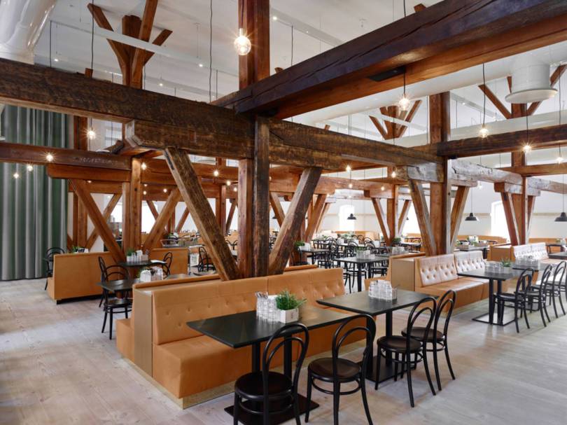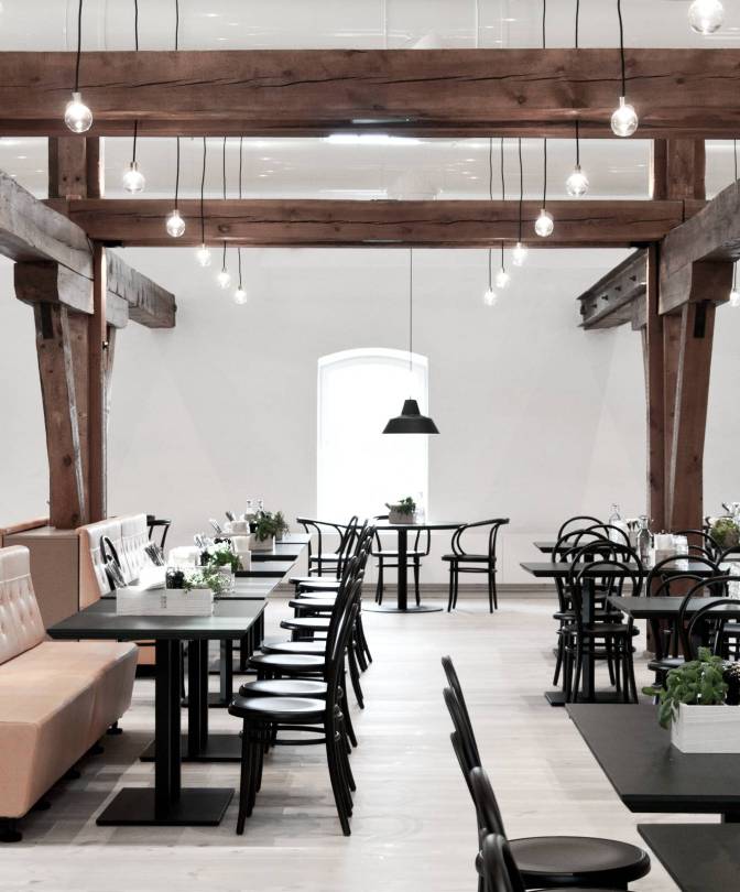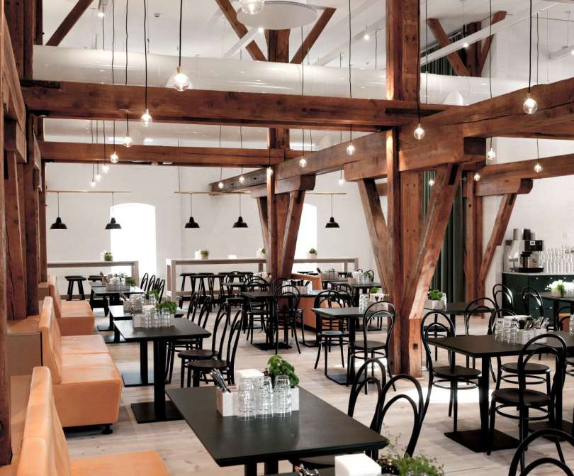 Meď, vápenec a podlaha s odtieňom borovice vytvárajú v kombinácii s nadčasovou klasikou vybratého nábytku a vybavenia harmonický a jednoliaty celok. Všetko je dôkladne navrhnuté a vybraté s dôrazom na detaily. Asi najkrajšia miestnosť pivovaru je Bistro, v ktorom si pod „korunami stromov“ vzniknutých z drevených trámov, môžete vychutnať miestnu kuchyňu.