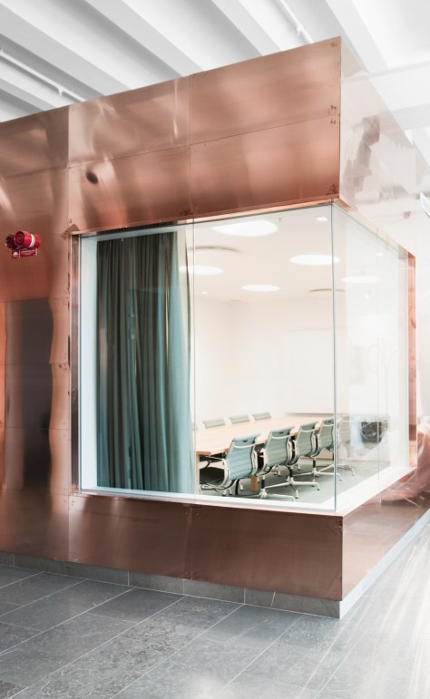 Čo sa týka dizajnu interiéru, od architektonického ateliéru White, v budove opäť ožíva príbeh z čias, kedy sa tu v obrovských medených nádobách varilo pivo. Ten je však zároveň v silnom kontraste s priestormi moderných presvetlených kancelárií. Nový účel budovy a súvisiace potreby sú elegantne a vkusne zapracované do jej obrovských priestorov. Materiály, nábytok a vybavenie boli starostlivo vybrané tak, aby boli v harmónii s charakterom budovy, ako aj podstatou spoločnosti Octapharma.